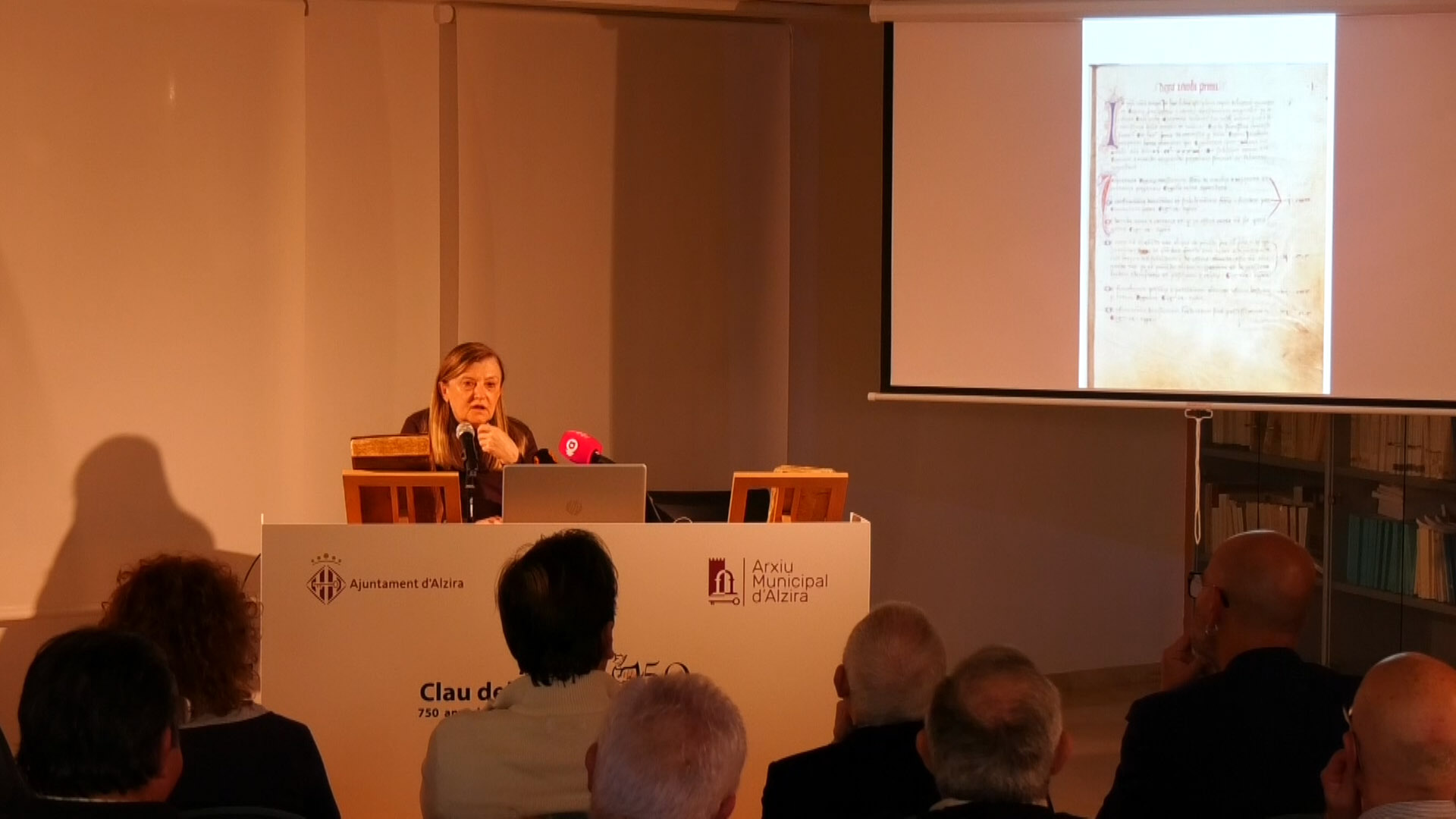 L’Arxiu Municipal d’Alzira ha acollit la primera jornada del cicle de conferències sobre Jaume I amb motiu del 750 aniversari de la mort del monarca a la ciutat. Josepa Cortés, doctora de la Universitat de València i especialista en el