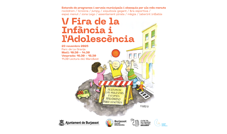 Burjassot celebra la V Fira de la Infància i l’Adolescència amb activitats lúdiques i esportives Una jornada festiva i reivindicativa posa les xiquetes i xiquets com a protagonistes al Parc de La Granja Ja està tot preparat perquè les xiquetes i els xiquets de Burjassot gaudisquen d’un diumenge diferent amb